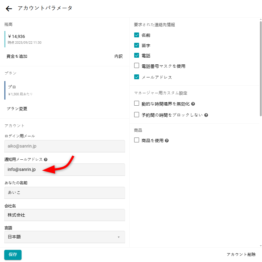 通知用メールアドレスを指定しない場合は、登録時に使用したメールアドレスにメッセージが送信されます。