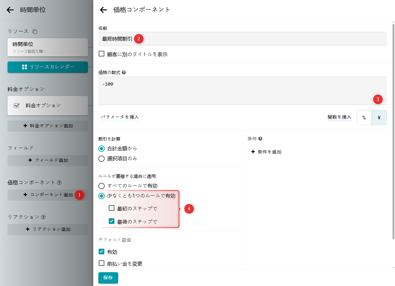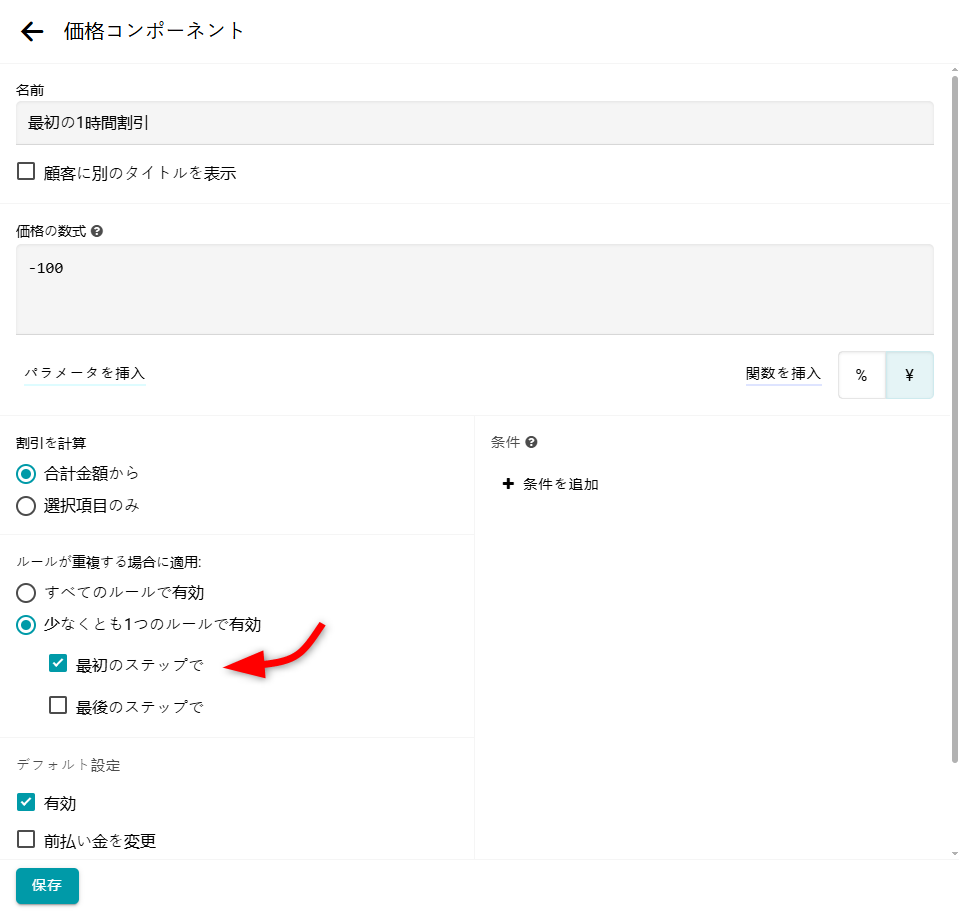 最初の時間に割引を適用したい場合は、最初のステップでのチェックボックスをオンにしてください。