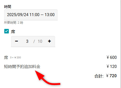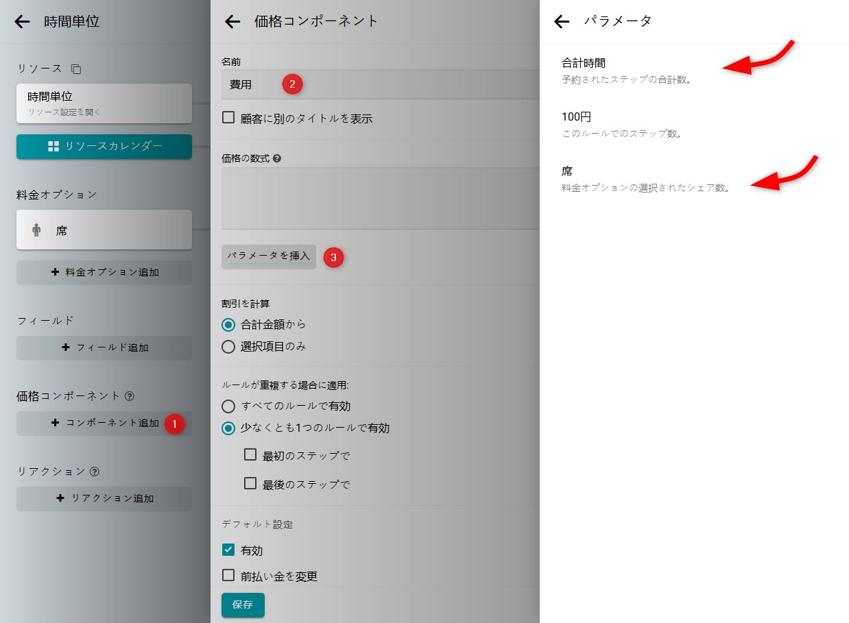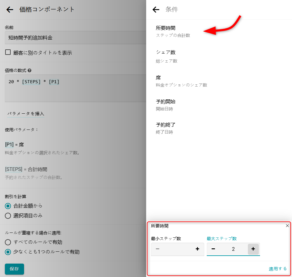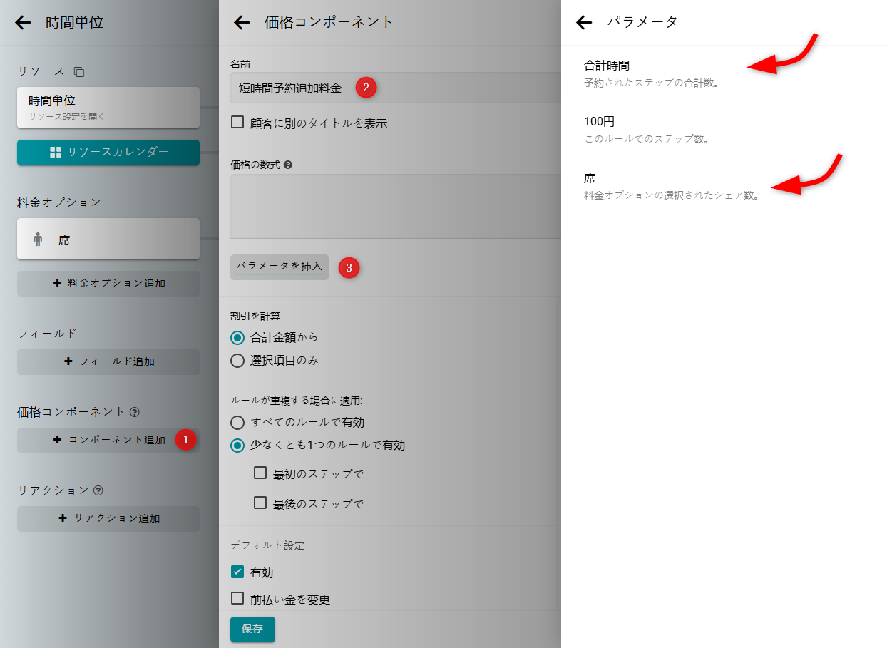 逆のアプローチも可能です。 3時間未満の予約に対して、1時間あたり20円の追加料金を加算します。 そのためには、まず1時間あたりの価格を80円に設定します。 その後、価格コンポーネントを作成します。