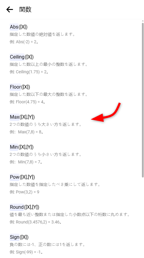 数式ではMax関数を使用します。 この関数は、2つの数値のうち大きい方を返します。 これにより、[STEPS] - 2の値が0未満にならないようにできます。 関数を追加するには、関数を挿入ボタンをクリックし、リストからMaxを選択します。