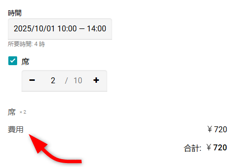 数式を入力します。 追加料金20円を時間数分掛けます。 その結果に予約した席数を掛けます。
