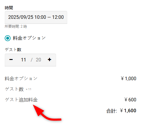 1時間あたり8名までのゲストに対して、1時間あたり1,000円のリソースがあるとします。 追加のゲストごとに、1時間あたり100円が別途請求されます。