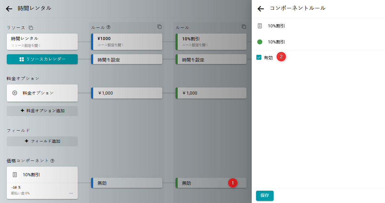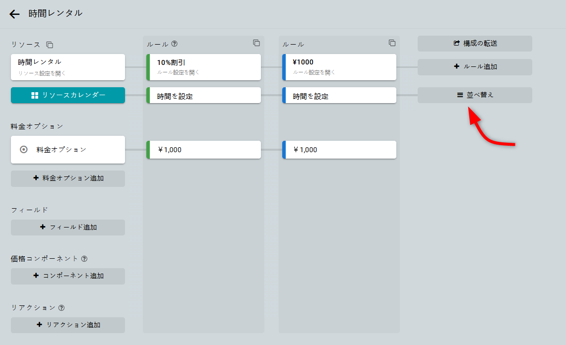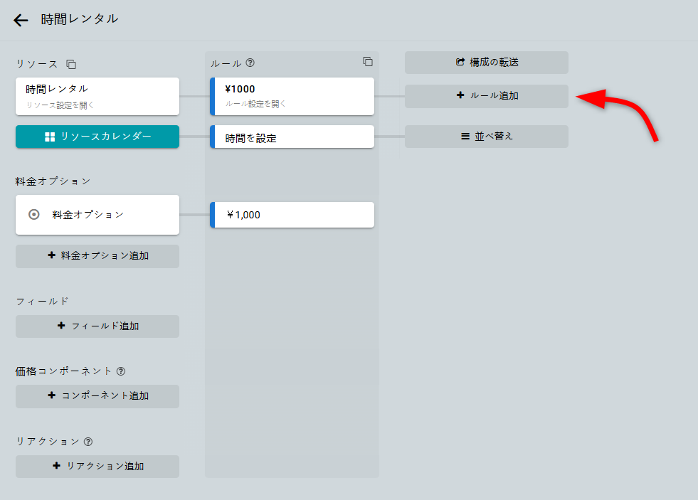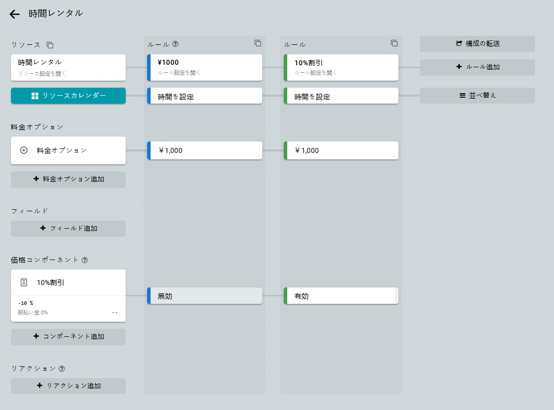 すでにルールが設定されたリソース(例:毎時レンタル)があるとします。