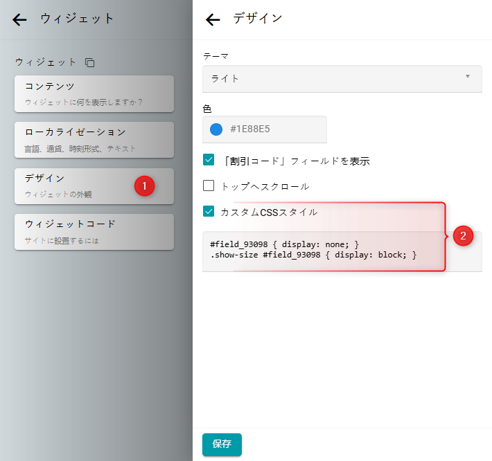 これで、この料金オプションが選択されると、ウィジェット内の予約フォームにCSSクラスshow-sizeが追加されます。