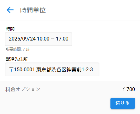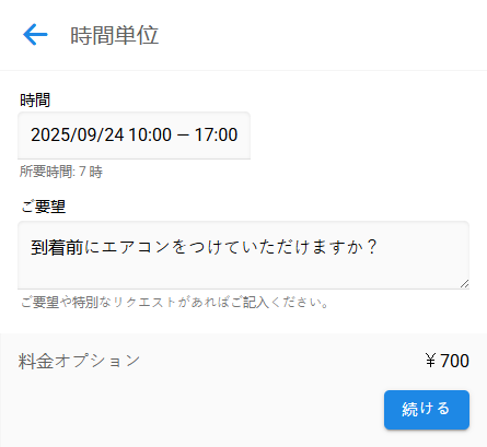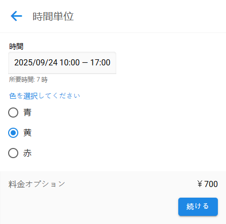 予約フォームでは、複数選択肢フィールドはこのように表示されます: