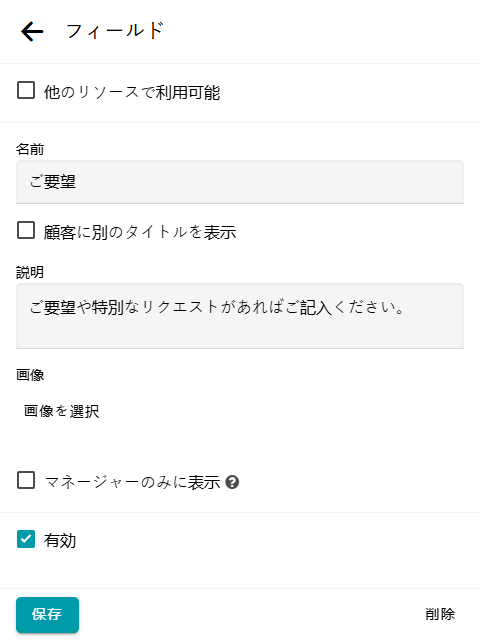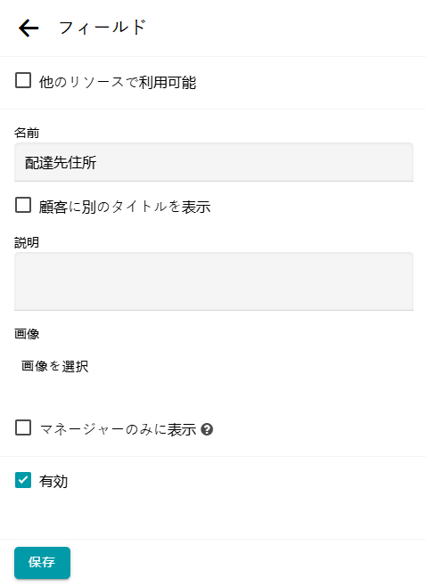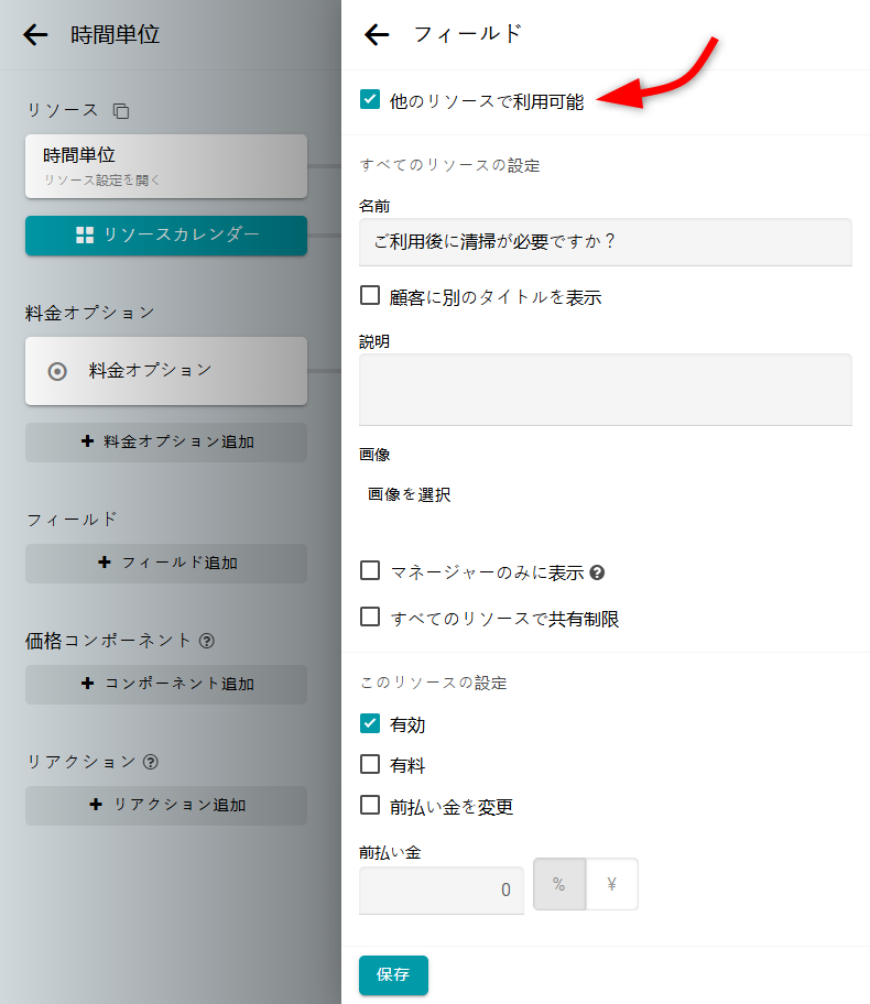 複数のリソースで同じフィールドを使いたい場合は、フィールド設定で他のリソースで利用可能オプションを有効にしてください。