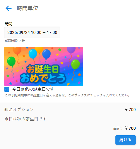 はい/いいえの回答が必要な場合は、チェックボックスフィールドを作成してください。 例:「誕生日です」など。