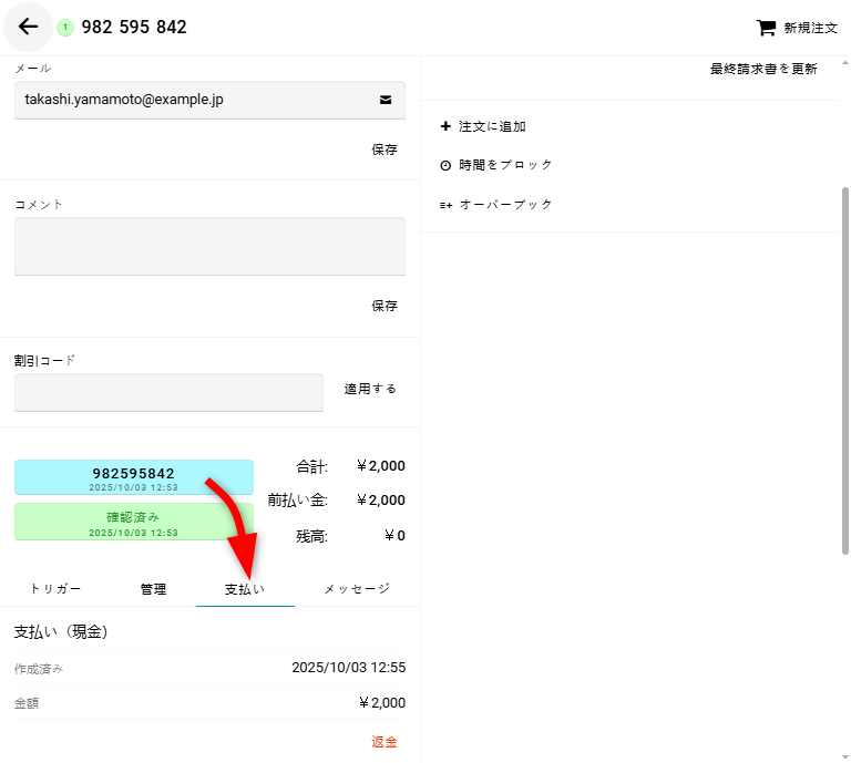 タブに支払いの詳細が表示されます。