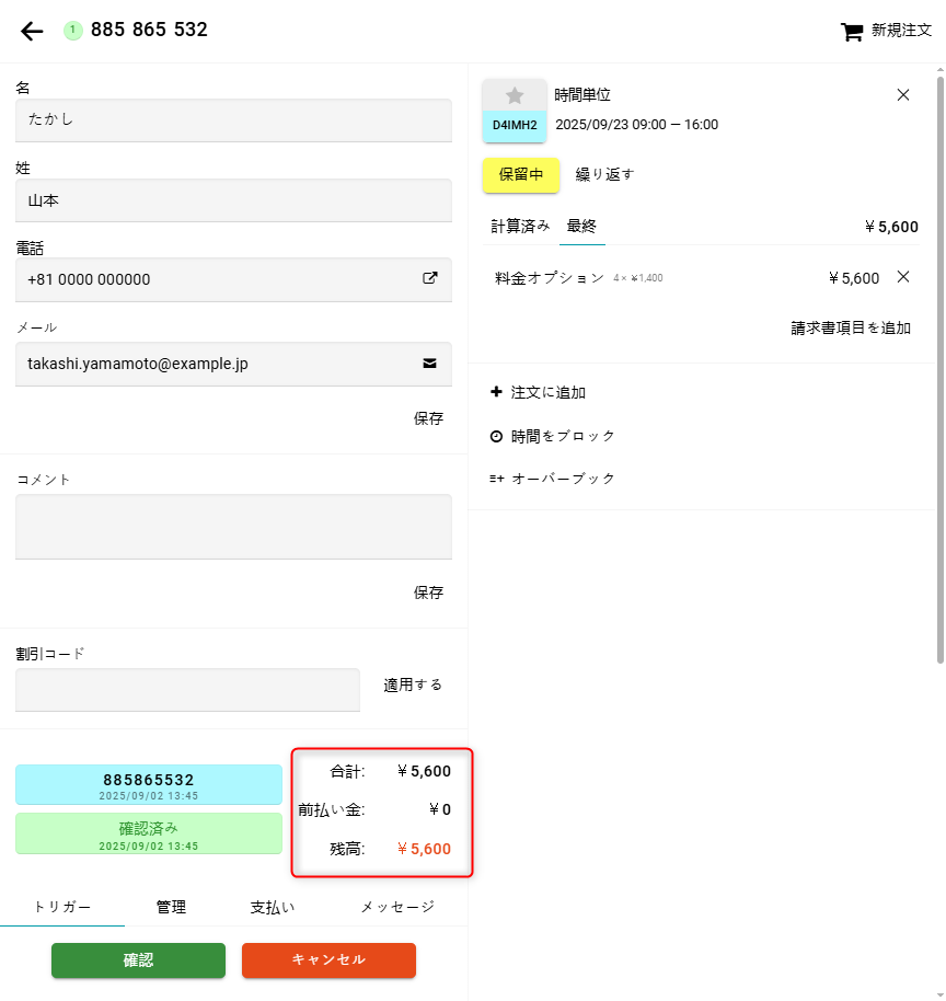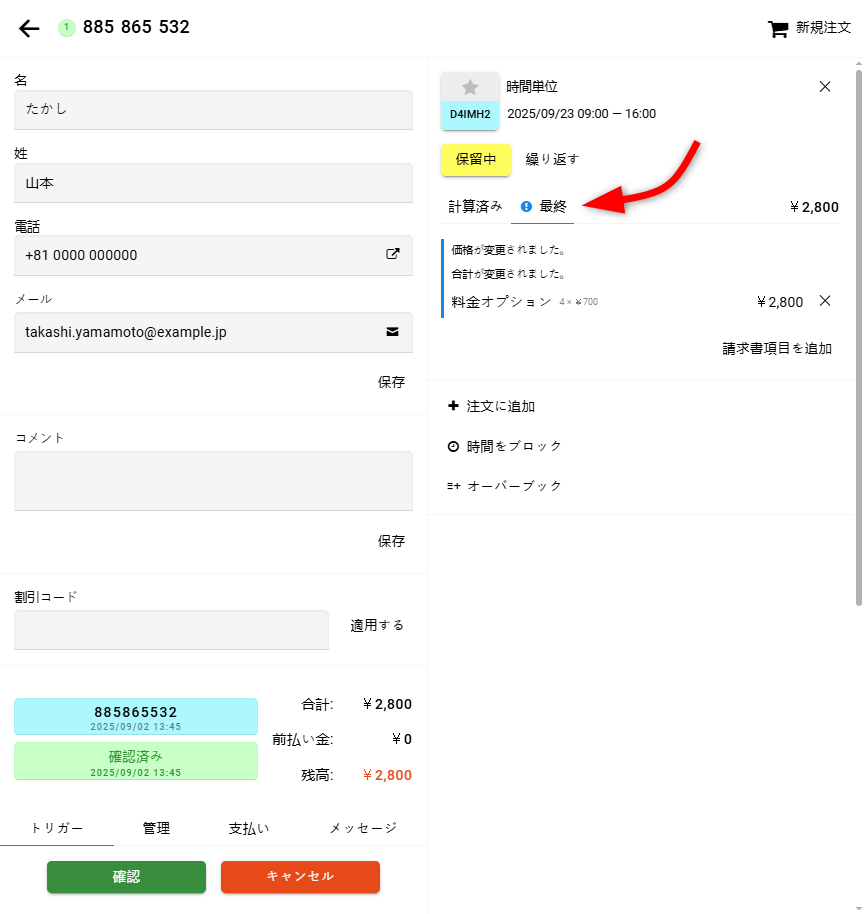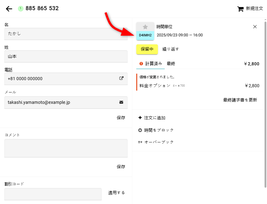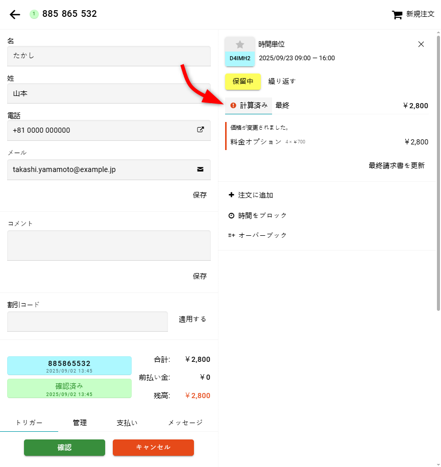 注文には、予約が最初に作成された時点で有効だった価格が表示されます。
