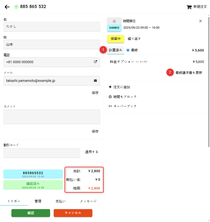 また、計算済みタブで最終請求書を更新をクリックすることもできます。