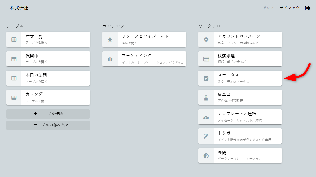 ステータスを設定するには、ダッシュボードでステータスを開いてください。