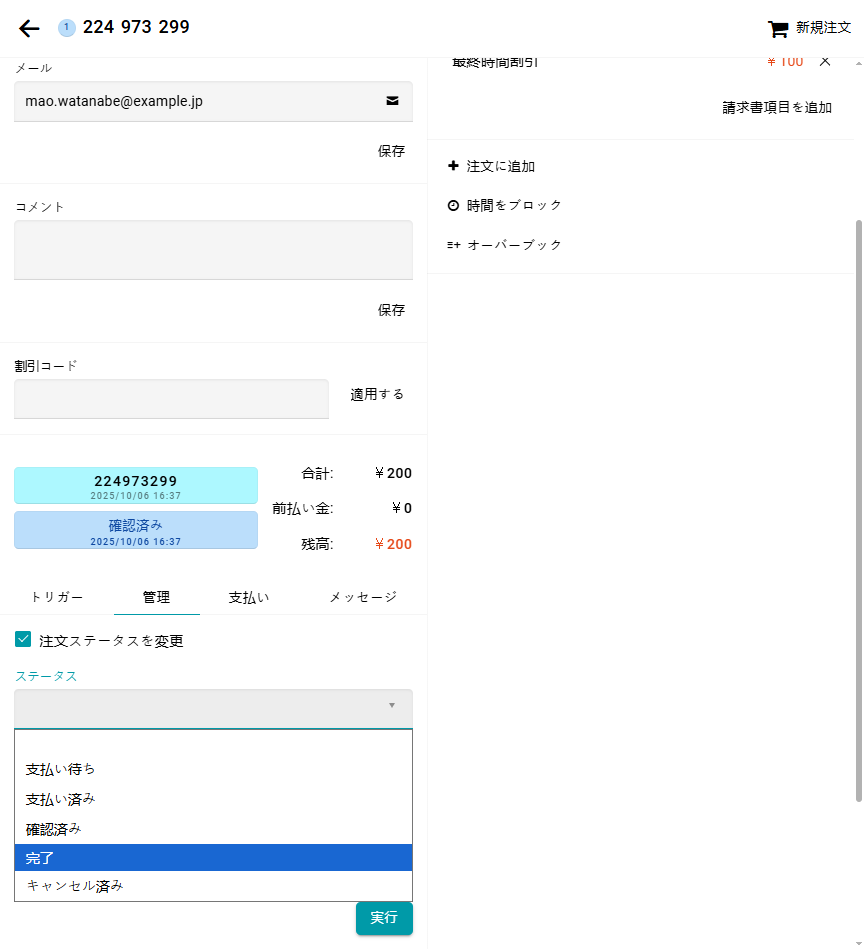 注文管理フォームで注文ステータスを変更できます:
