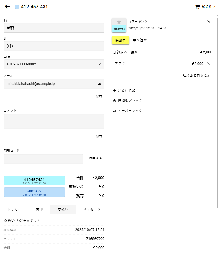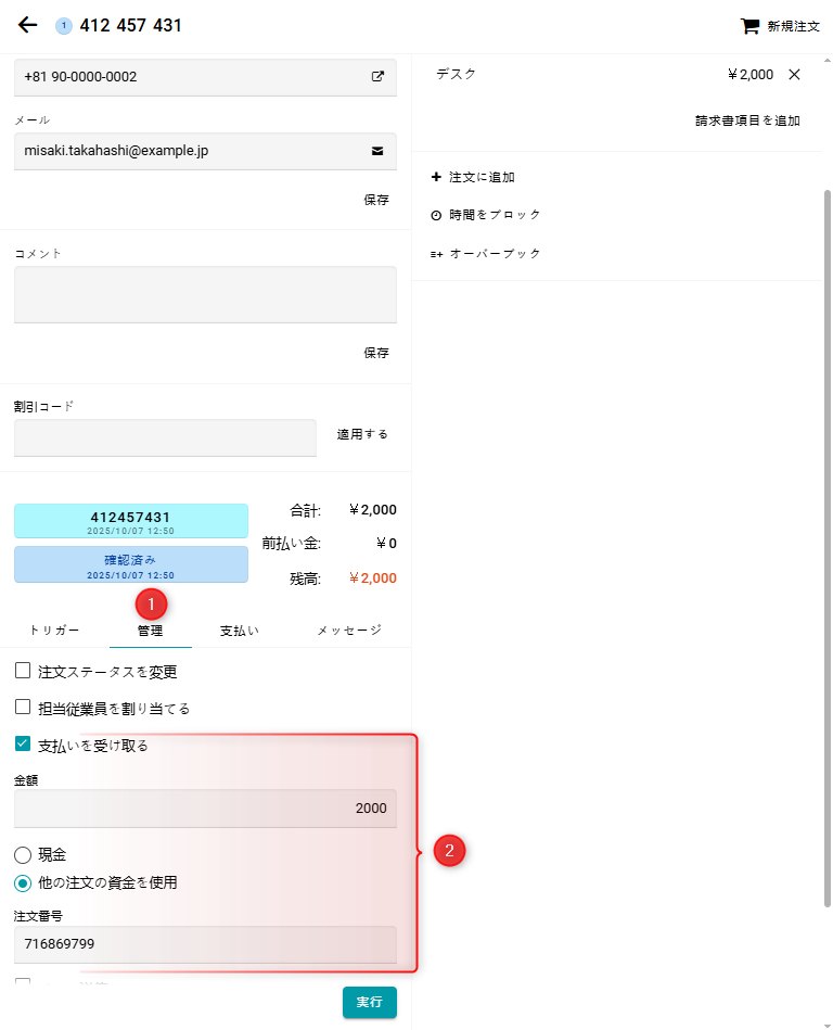 支払いを受け取るチェックボックスを選択し、支払い金額を入力します。