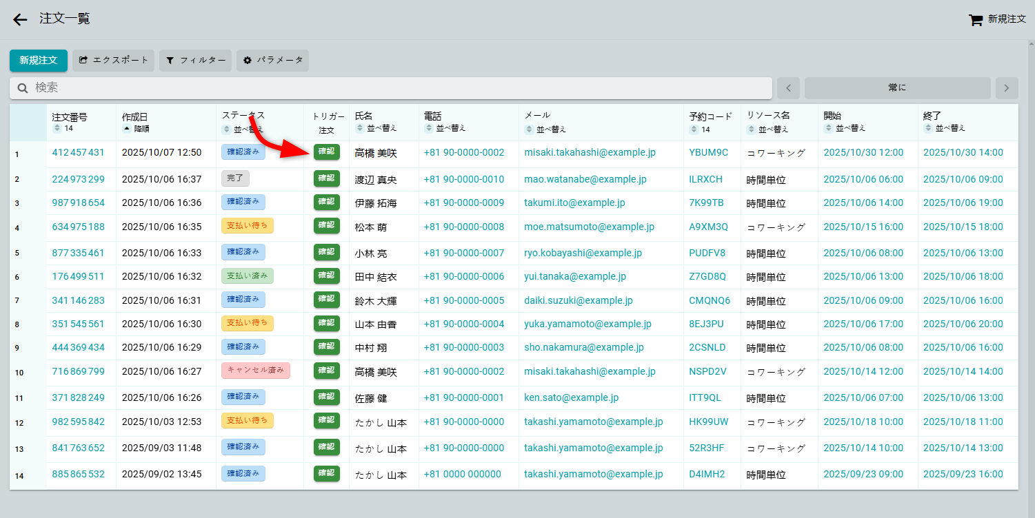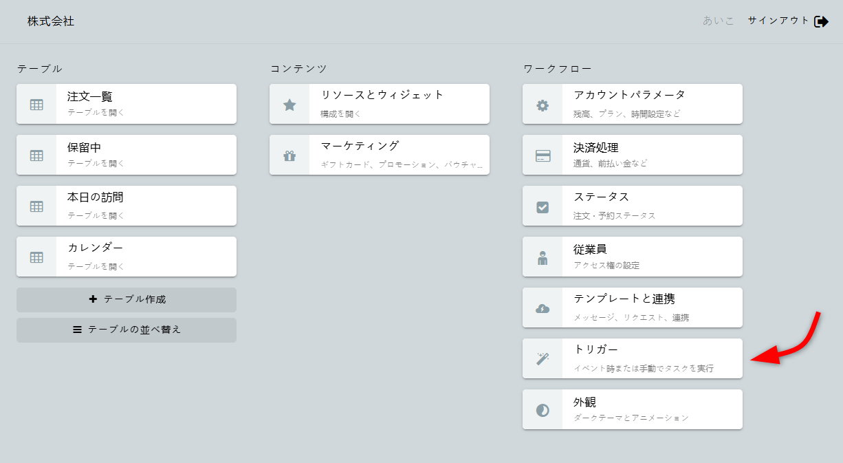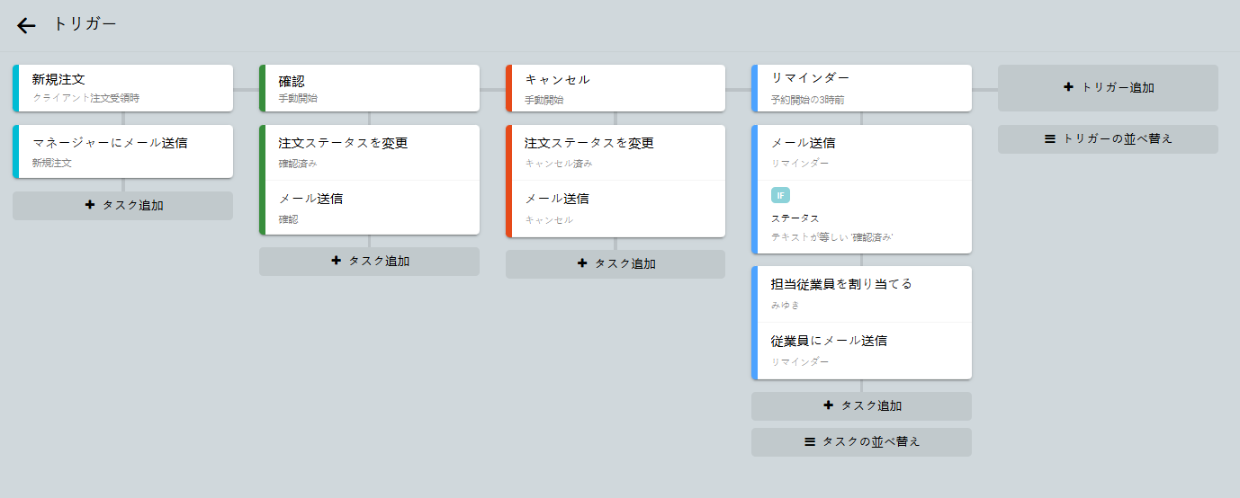 従業員を設定している場合は、従業員ごとに異なるトリガーを表示することも可能です。