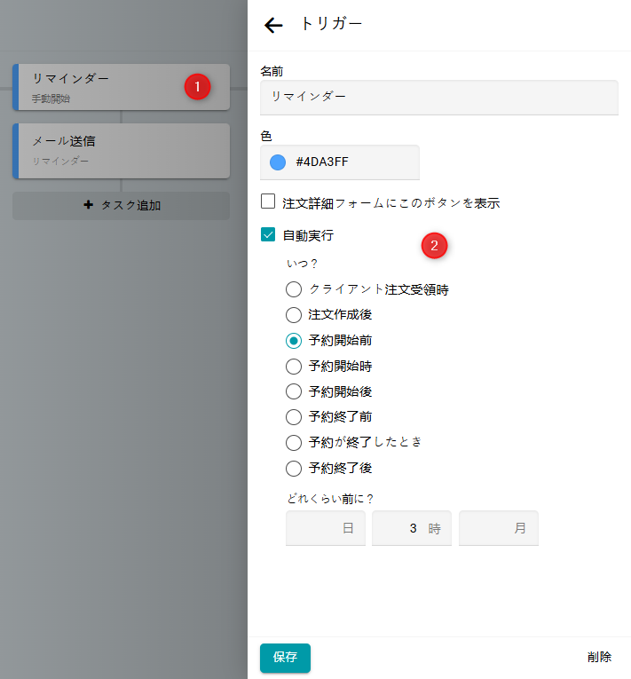 トリガーを自動実行したい場合は、いつ実行するかを選択してください。