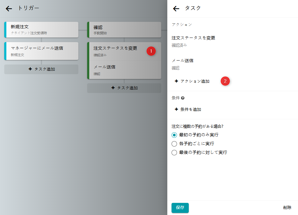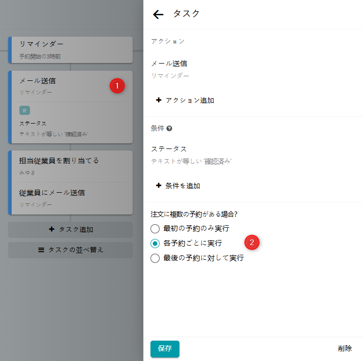 1つの注文に複数の予約がある場合、タスクをどのように実行するか指定できます。
