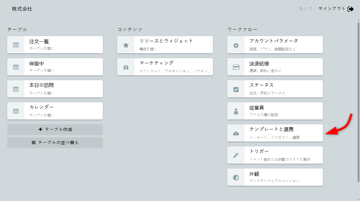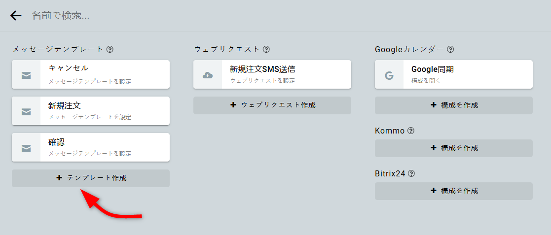ダッシュボードに移動し、テンプレートと連携を開きます。