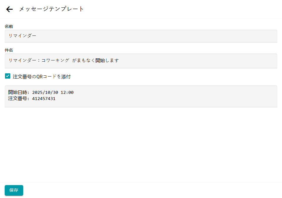 3. 注文番号のQRコードを添付 チェックボックスを選択します。
