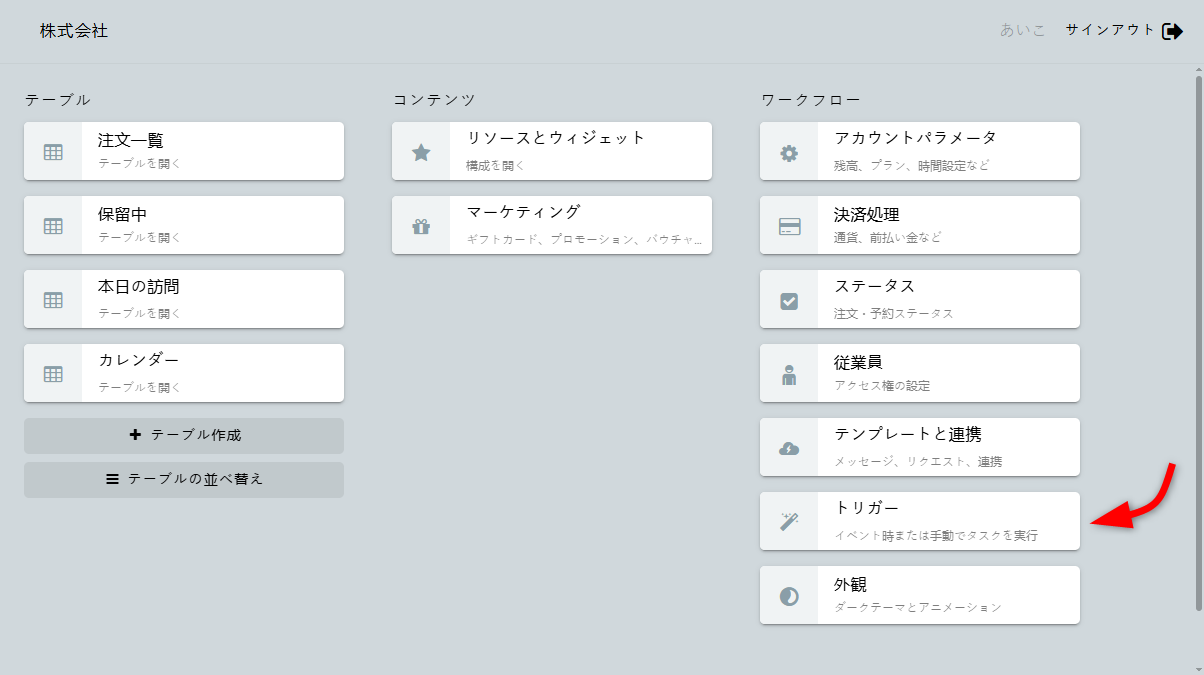 次に、ダッシュボードに戻り、トリガーを開きます。