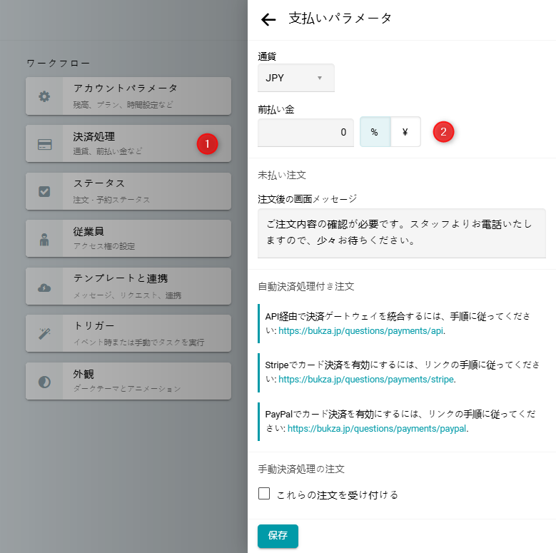 もしくは、支払いを受け付けたい場合は、以下のいずれかのお支払い方法を有効にしてください: