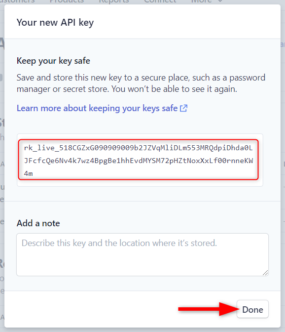 14. キーが表示されたウィンドウが開きます。このキーを安全な場所に保存してください。