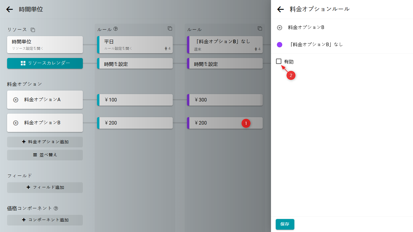 新しいルールと利用不可にしたい料金オプションの交差部分をクリックします。 開いた設定フォームで、