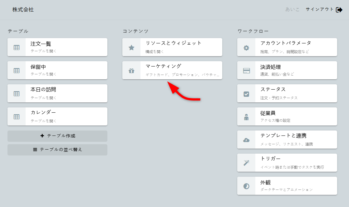 マーケティングセクションを開いてください。