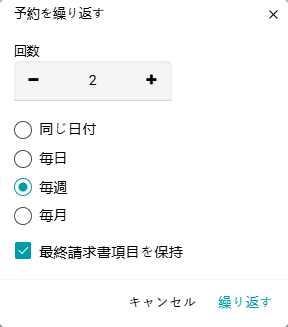 マネージャーとして、定期的(繰り返し)の予約をシステムに追加できます。