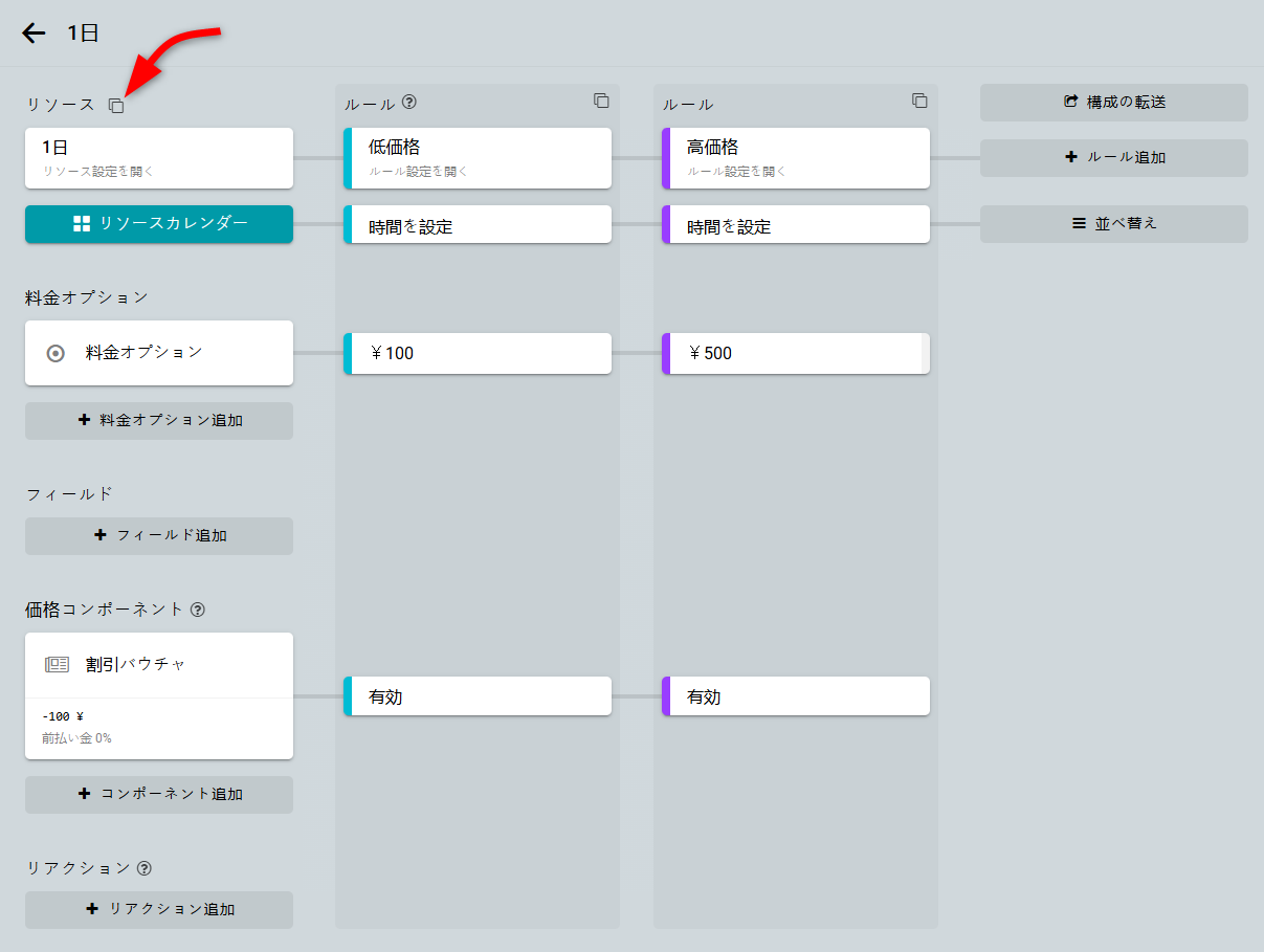 はい、リソースをコピーできます。 そのためには、リソース構成画面をオープンしてください。 左上の