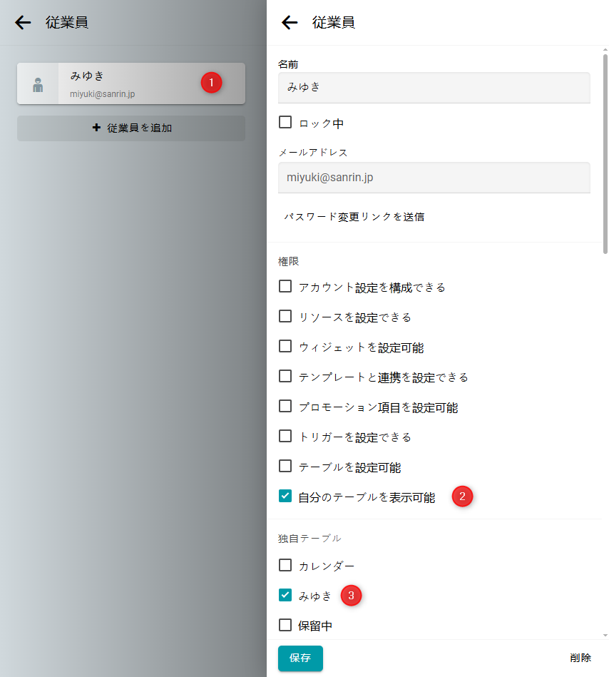 まだサービス内で従業員を作成していない場合は、従業員を追加してください。 従業員の作成方法については