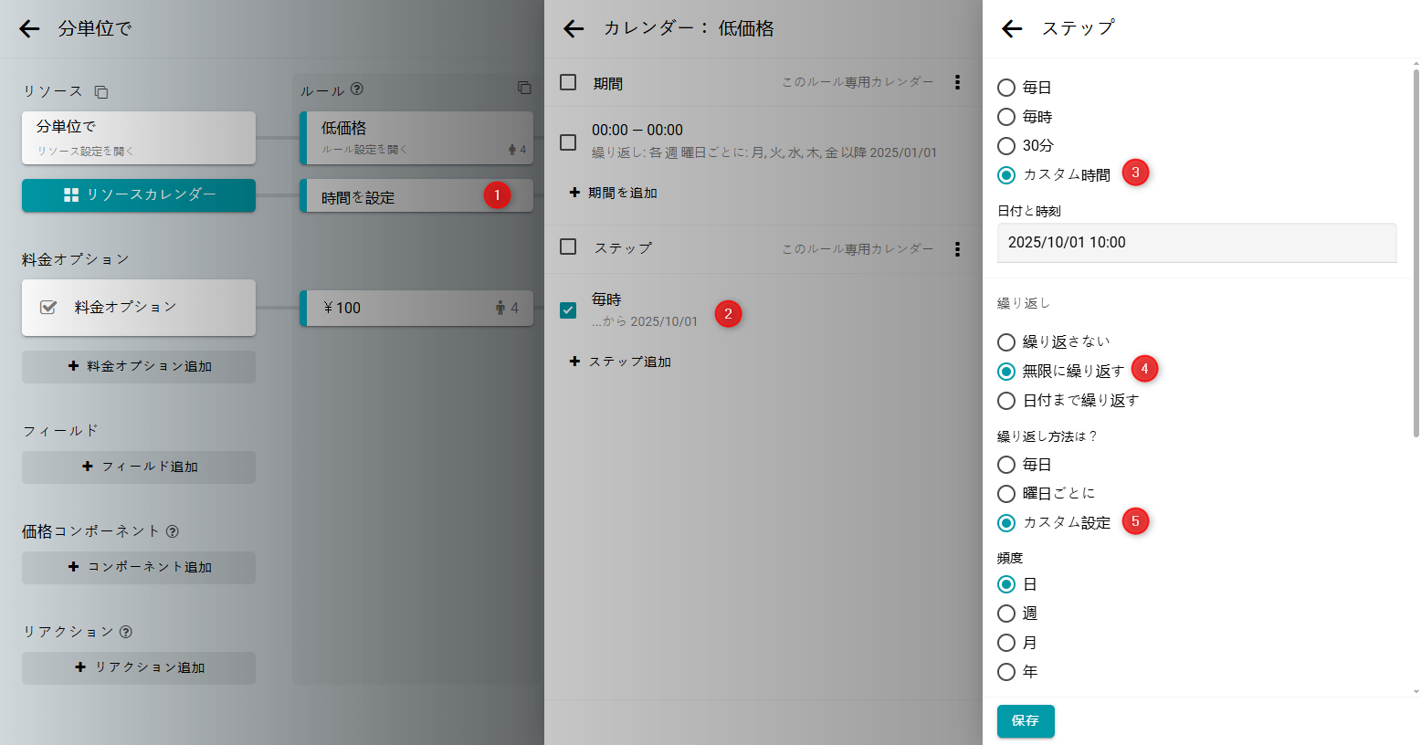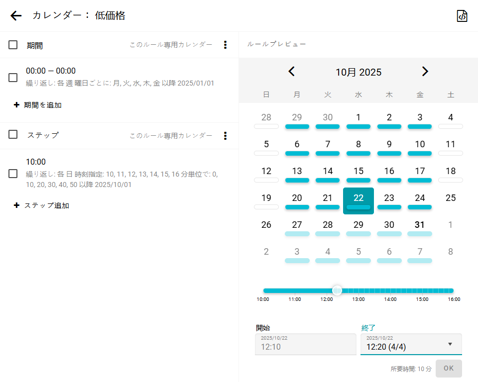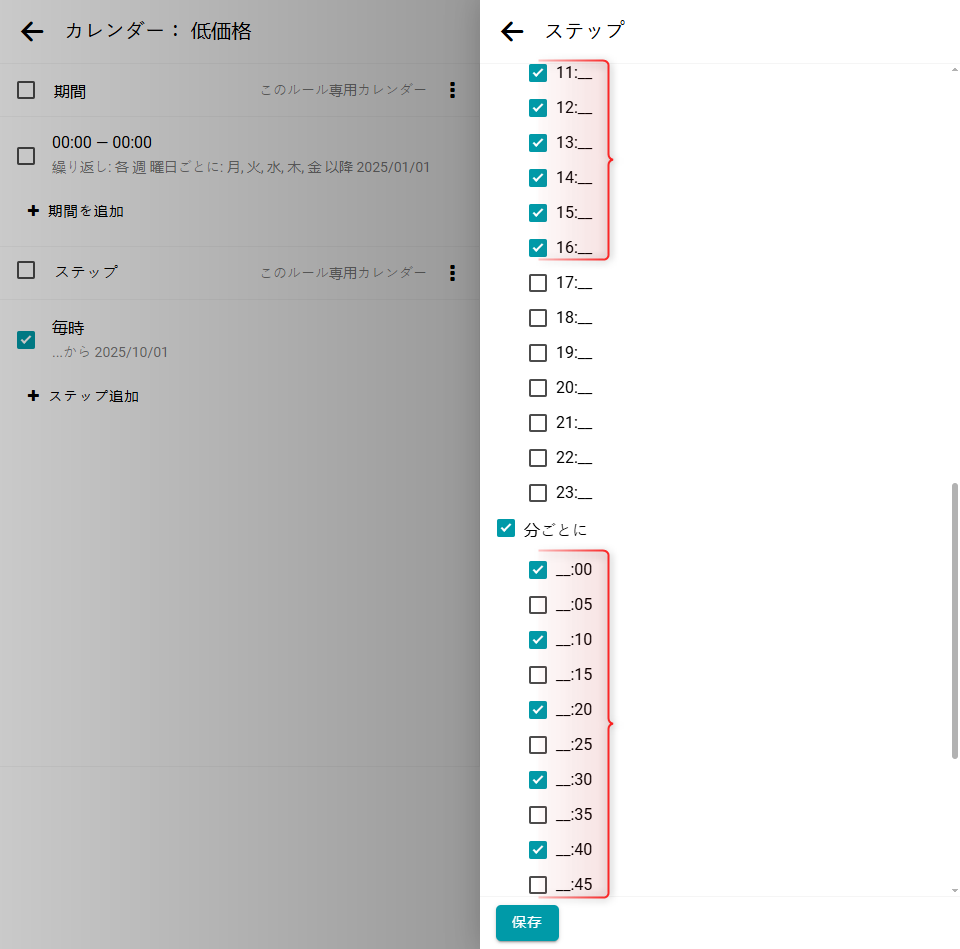 次に、繰り返しの時間(時と分)を指定して設定します。