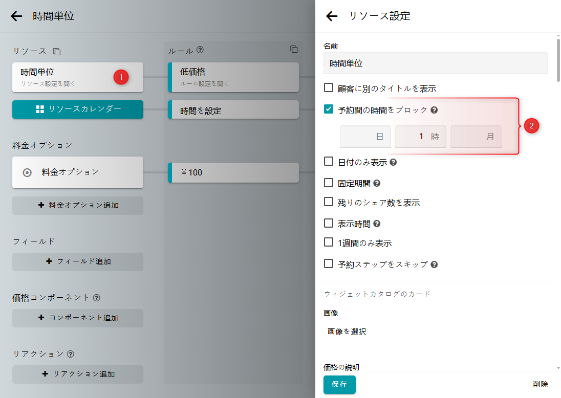 リソース設定で、