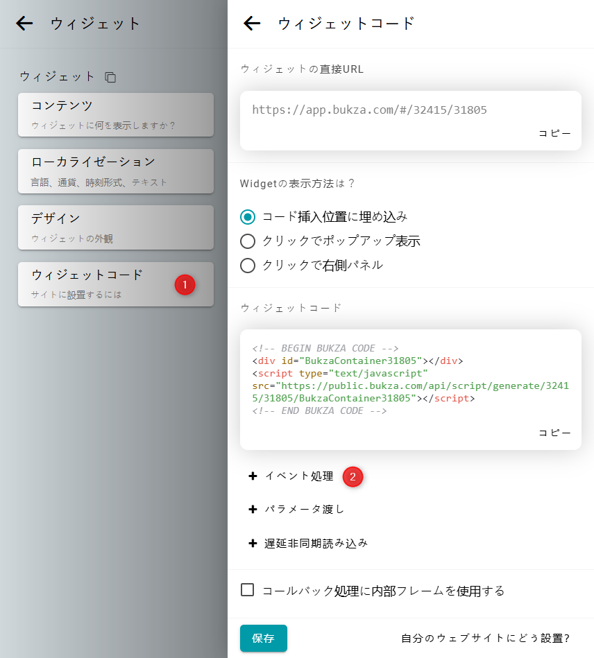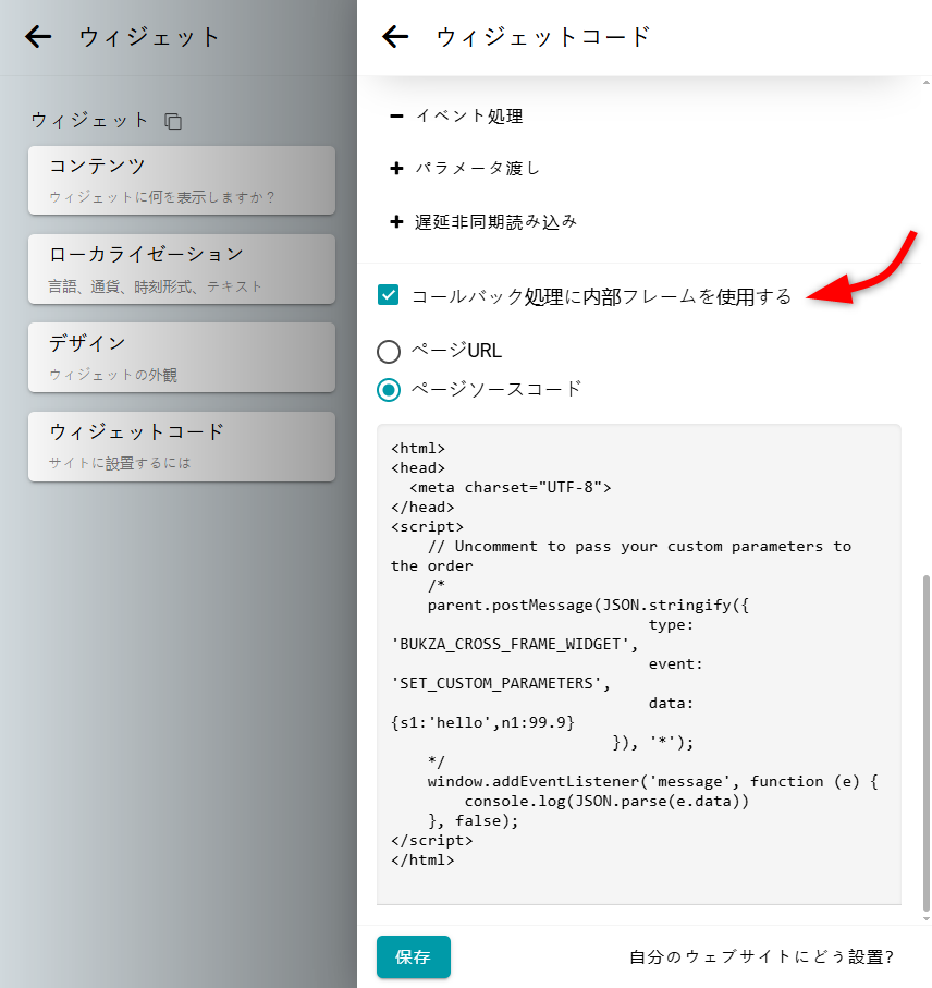 場合によっては、イベントハンドラー付きのウィジェットコードを直接ページに追加できないことがあります。 これは、ウィジェットがSNS上に設置されている場合や、顧客にウィジェットへの直接リンクを提供する場合などです。 そのような場合、内部フレームを使ってウィジェット内で直接コードを実行できます。