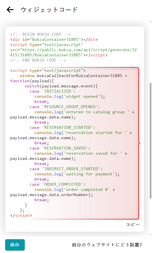 - RESERVATION_SAVED — 予約画面から注文画面に進んだときに発火します。nameとresourceIdのパラメータが渡されます。
