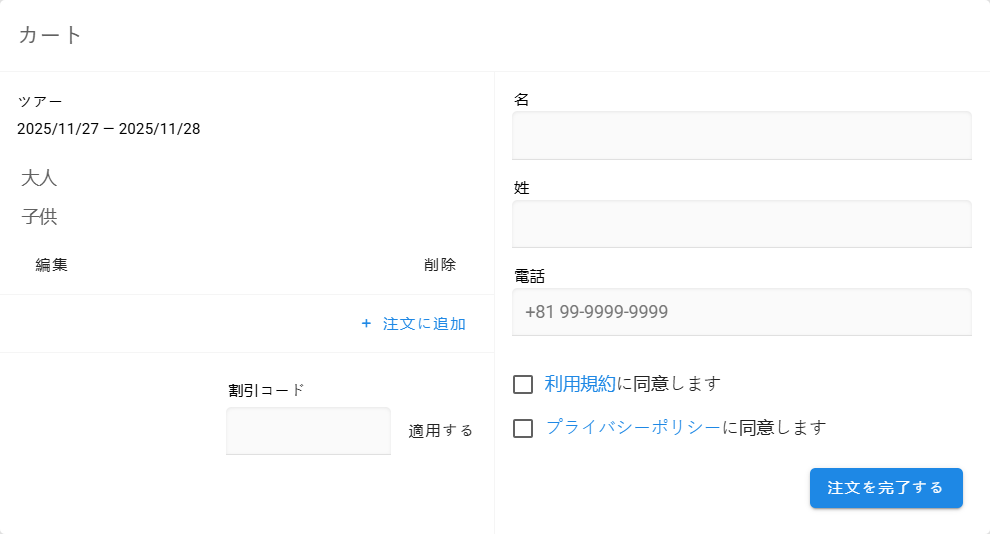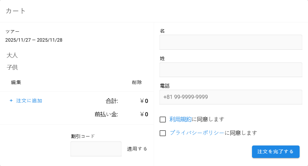 その結果、すべての価格が予約画面およびカート画面で非表示になります。