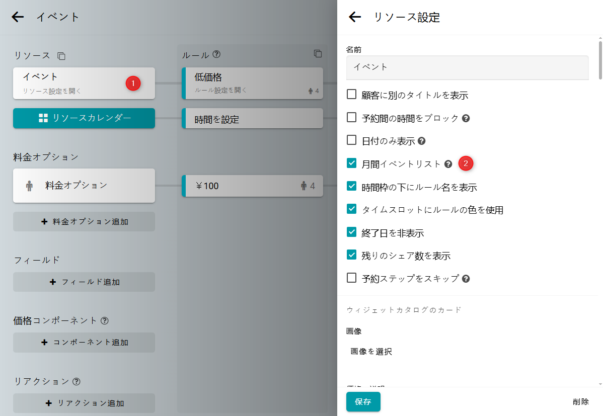 リソース設定をオープンし、