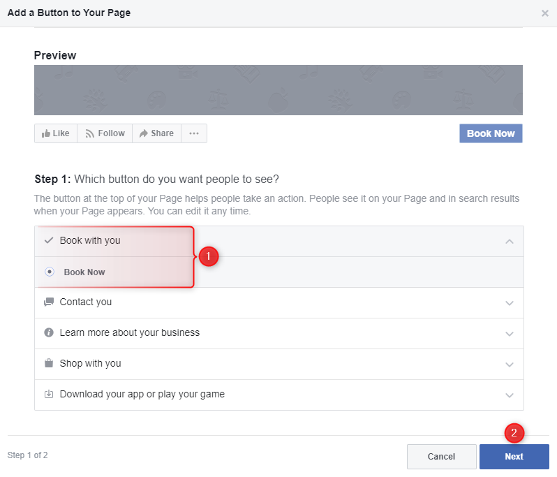 Facebookページにウィジェットへのリンクを追加できます。