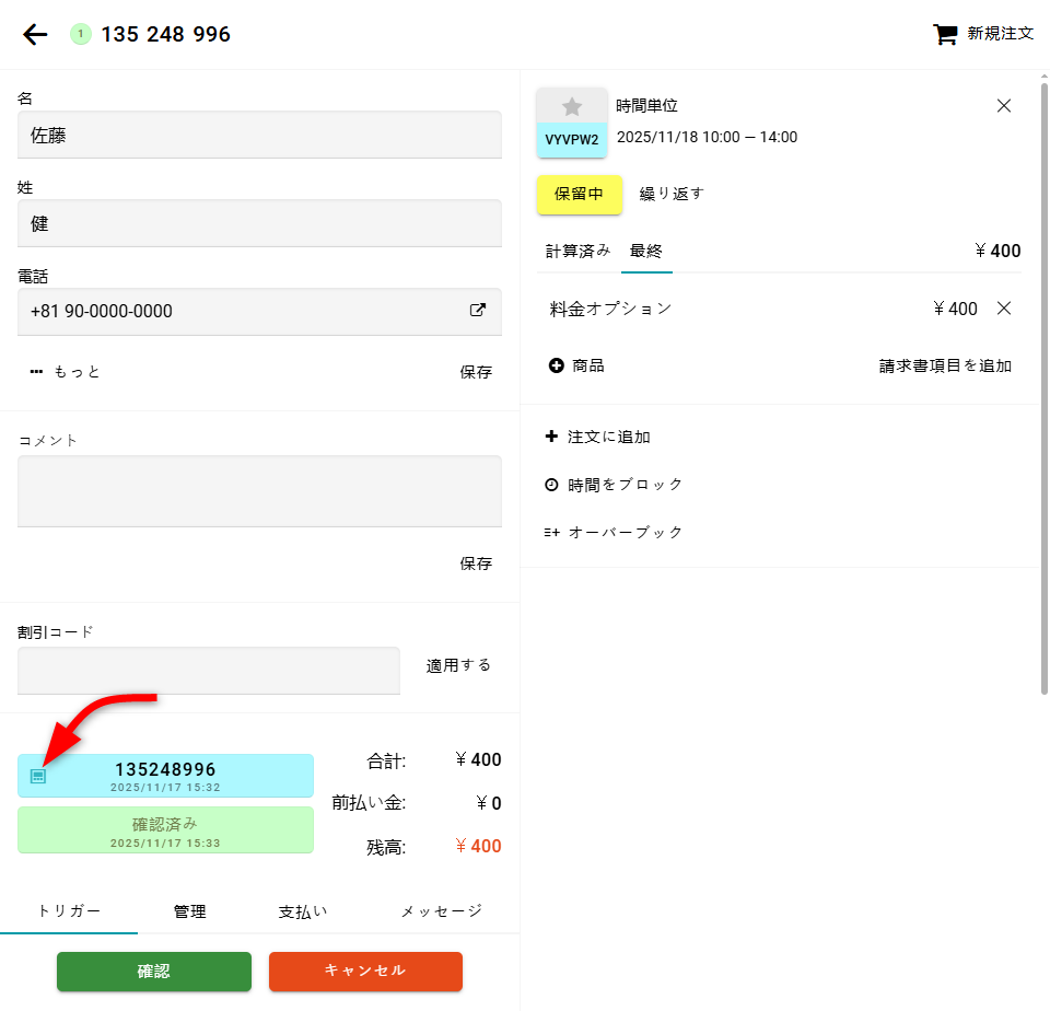 このフォームを開くには、注文番号ブロック内のウィジェットアイコンをクリックしてください。